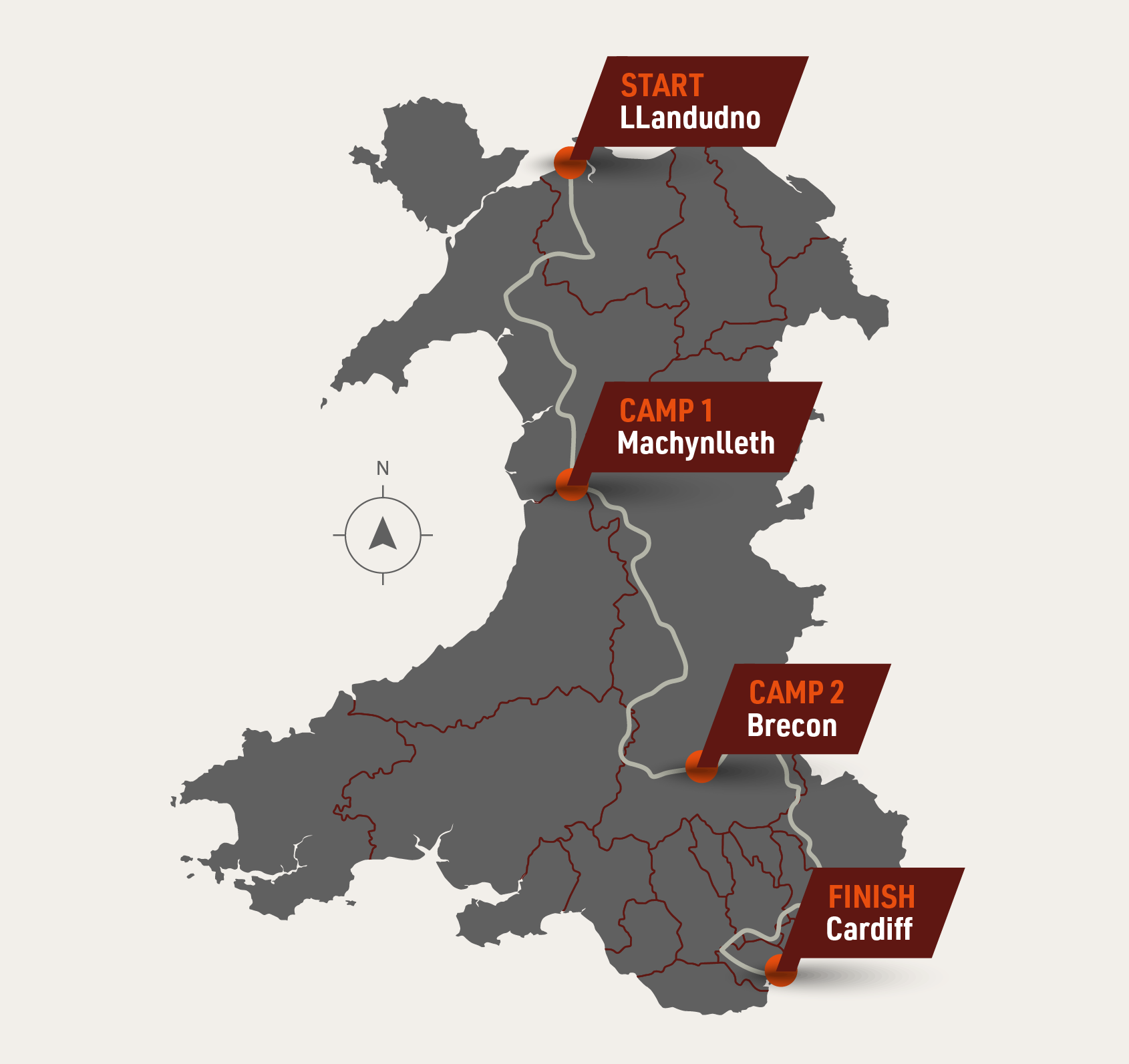 A challenging but achievable ride from the North coast of Wales to the capital.